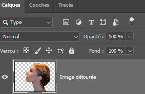8 - Pour obtenir une image détourée sur fond transparent, supprimez le calque de couleur.
