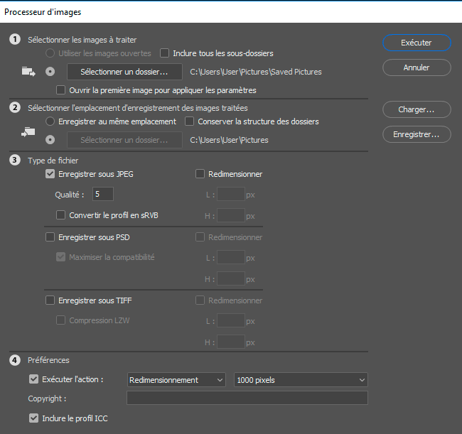 Il est possible de redimensionner et enregistrer automatiquement toutes les images d'un dossier.