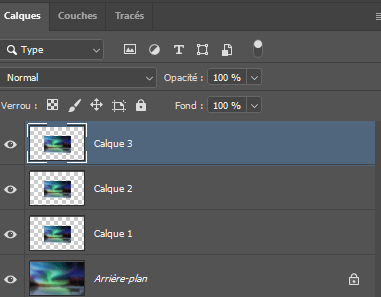 5 - Dupliquez ce calque 2 fois et renommez ces 3 calques :