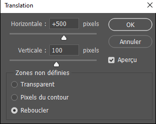 Filtre, Divers, Translation : 500 x 100, Reboucler :