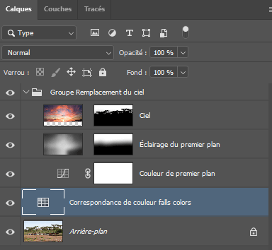 et attribuez le calque de réglage Correspondance de la couleur sur le calque inférieur (Calque 0) :
