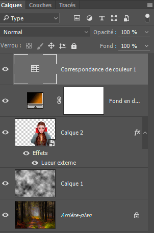 8 - Au bas de la Palette calques, cliquez sur Créer un calque de remplissage ou de réglage puis Correspondance de la couleur (Versions précédentes, Recherche des couleurs).