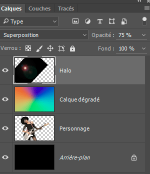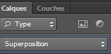 5 - Choisissez le mode de fusion Incrustation ou Lumière tamisée :