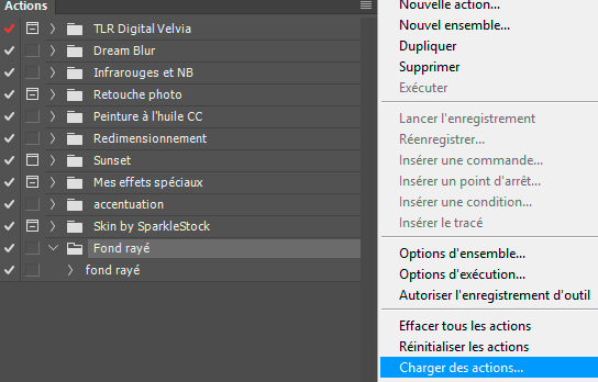 1 - Dézippez et installez l'action (script) Fond rayé,