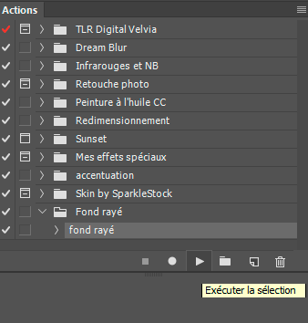 2 - Sélectionnez la ligne Fond rayé et Cliquez sur Exécuter la sélection au bas de la Palette :