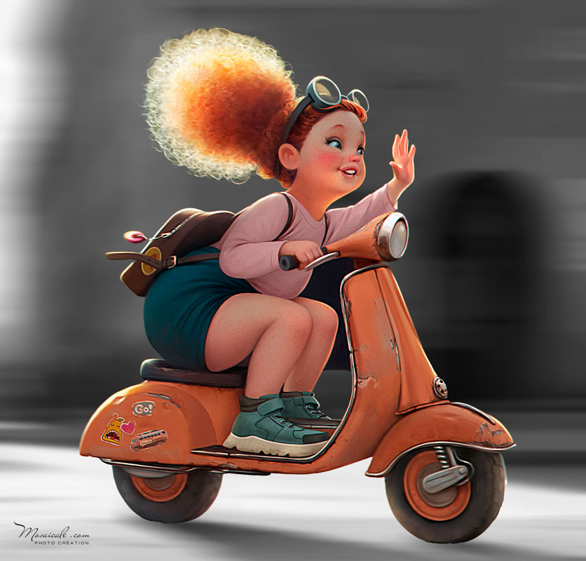 Exemple 4 : Noir et blanc et Filtre, Flou, Flou directionnel pour un effet de vitesse :