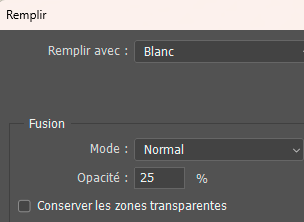 Édition, Remplir, Blanc, Opacité 25% pour que le sujet se détache du fond :