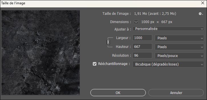 Si ce n'est pas le cas comme sur l'image modèle, modifiez-la puis restaurer la taille de l'image à 1000 pixels de largeur :