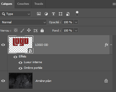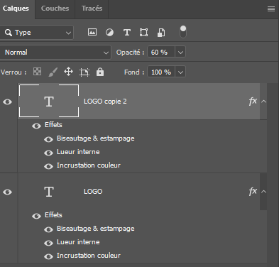 5 - En tenant la touche MAJ enfoncée sélectionnez les deux calques de texte.
