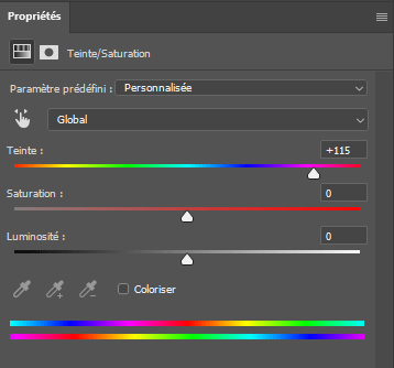 Faire varier le curseur Teinte pour obtenir la tonalité voulue :